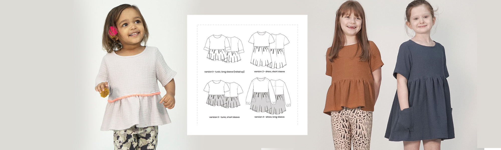 Kids, Girls 2 in 1 Layered Sweat Dress Sewing Pattern, Ages 1-11 years, Paper and PDF Options