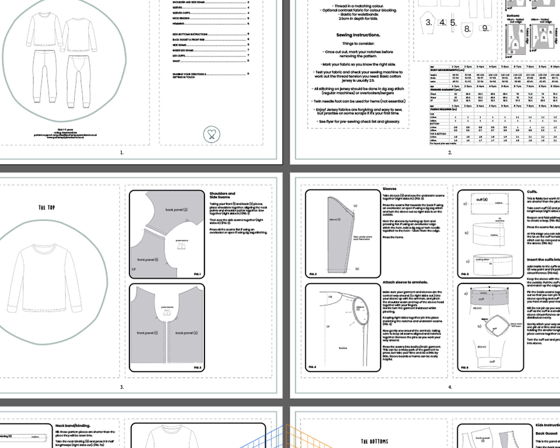 Kids Pyjama Sewing Pattern (1–11 years) Cosy, stretchy, and made for slow mornings and bedtime giggles. Our Kids Pyjama Pattern is a relaxed, everyday essential with a snuggle-fit leg and comfy cuffed sleeves and hems, designed for soft jersey or knit fabrics. It’s the perfect make for Christmas Eve PJs, birthday gifts, or simply adding some handmade happiness to their everyday wardrobe.